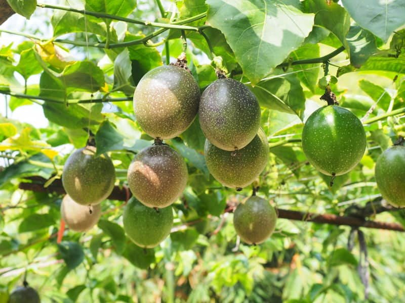 After successful pollination, small green star-shaped fruits begin to form at the base of the flowers. Over time, these grow larger, turning from green to yellow as they ripen.